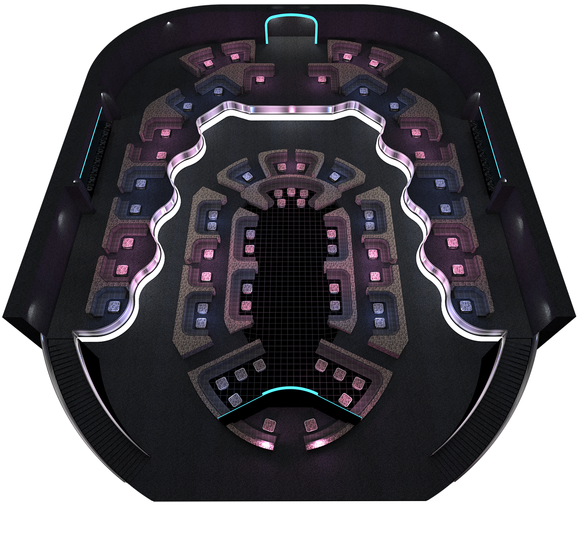 Slightly elevated from the center dance floor table are a couple of center upper dance floors, these have a great straight on view of the DJ and behind you is the traffic entering the venue.